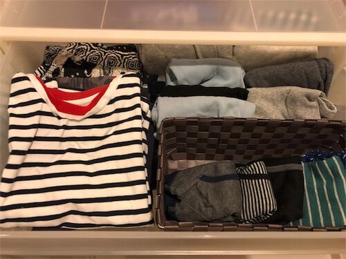 今日の断捨離はパジャマ・下着類です。 先日息子のパンツなのはガサッと捨てましたが、今回は自分の物を♪ ちなみに息子の小さくなったパジャマ、下着を捨てて整理整頓をしたらこんなに見やすく綺麗になりました(^ ^) 息子はとりあえず上にあるものから取って…
